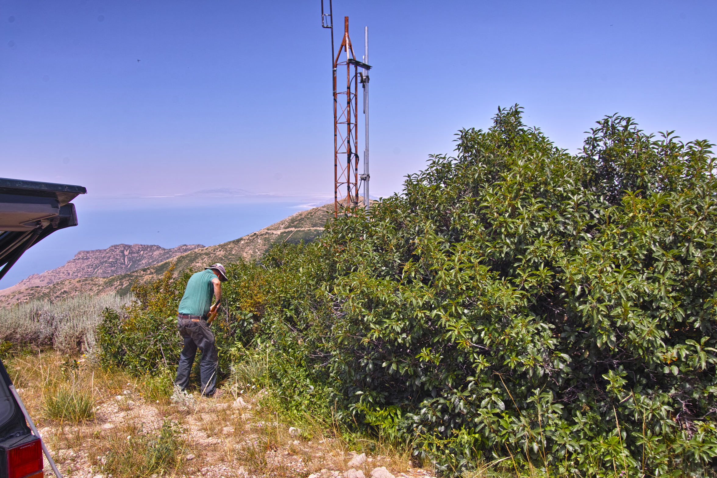 We got word that our 146.62 repeater receiver and receiving antenna on Farnsworth Peak were in danger — not of being stolen or destroyed, but of being buried beyond recovery by vegetation. We spent an afternoon on July 29 trying to make our way through the jungle.