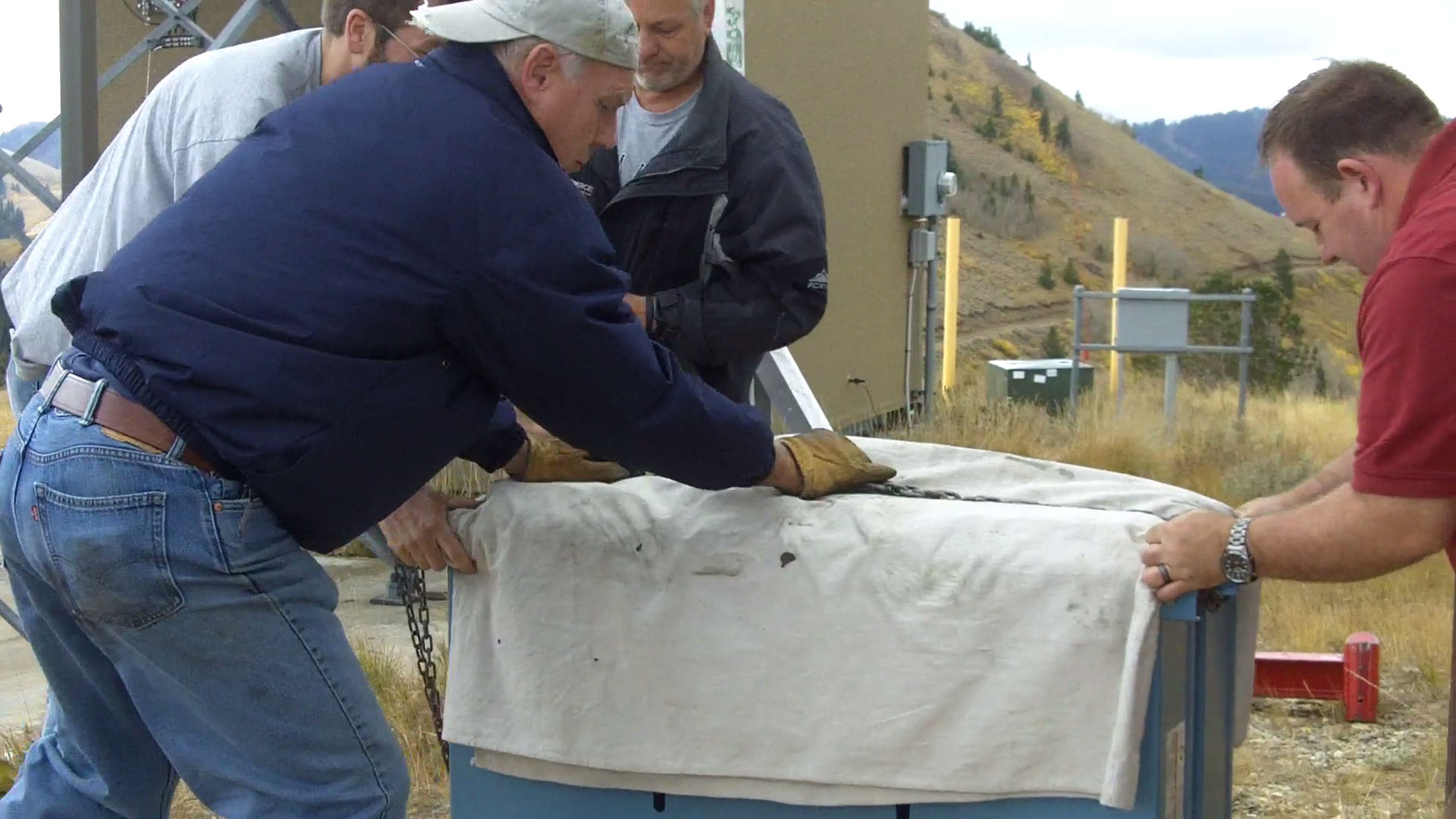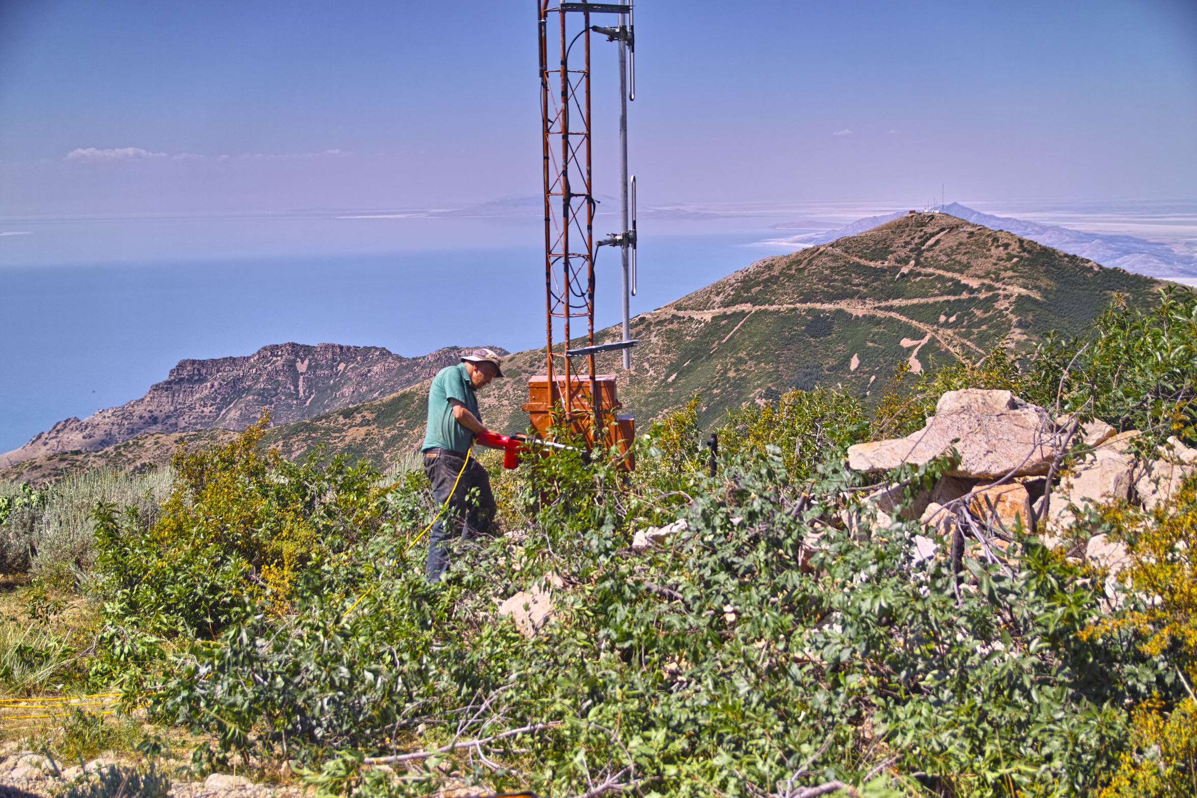 On September 22, 2016, Clint Turner, KA7OEI; Bryan Mogensen, W7CBM; and volunteers from Bryan's work, took on the installation of 1600 pounds of battery at the site of UARC's Scotts' Hill repeater.